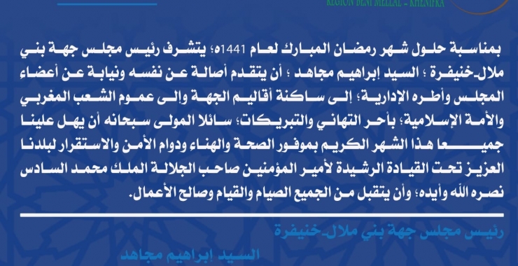 أشرف وزير الداخلية السيد عبد الوافي لفتيت، اليوم الجمعة بمدينة بني ملال، على حفل تنصيب السيد محمد بنريباك واليا جديدا على جهة بني ملال خنيفرة وعاملا على إقليم بني ملال، خلفا للسيد الخطيب