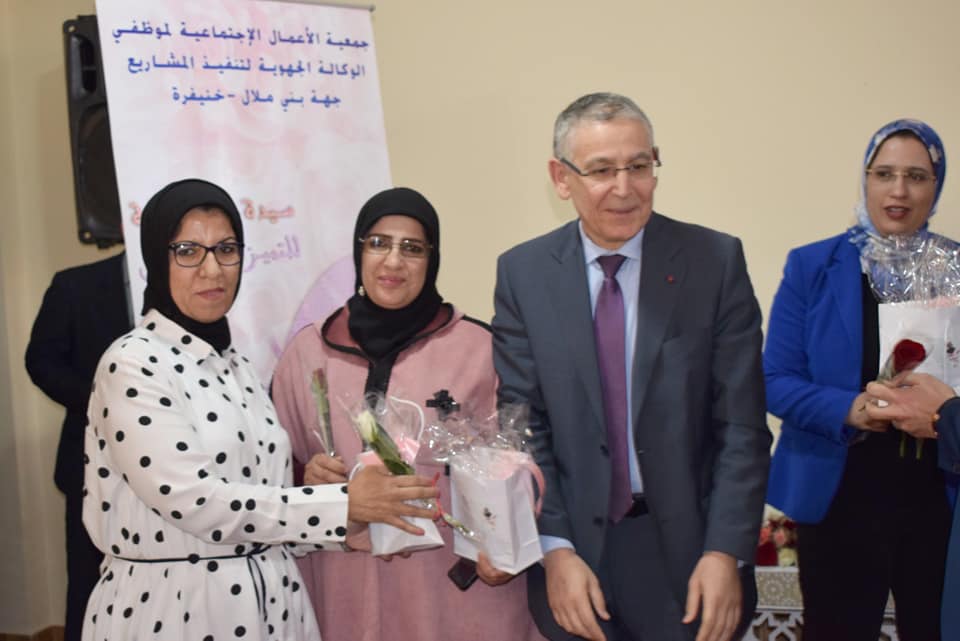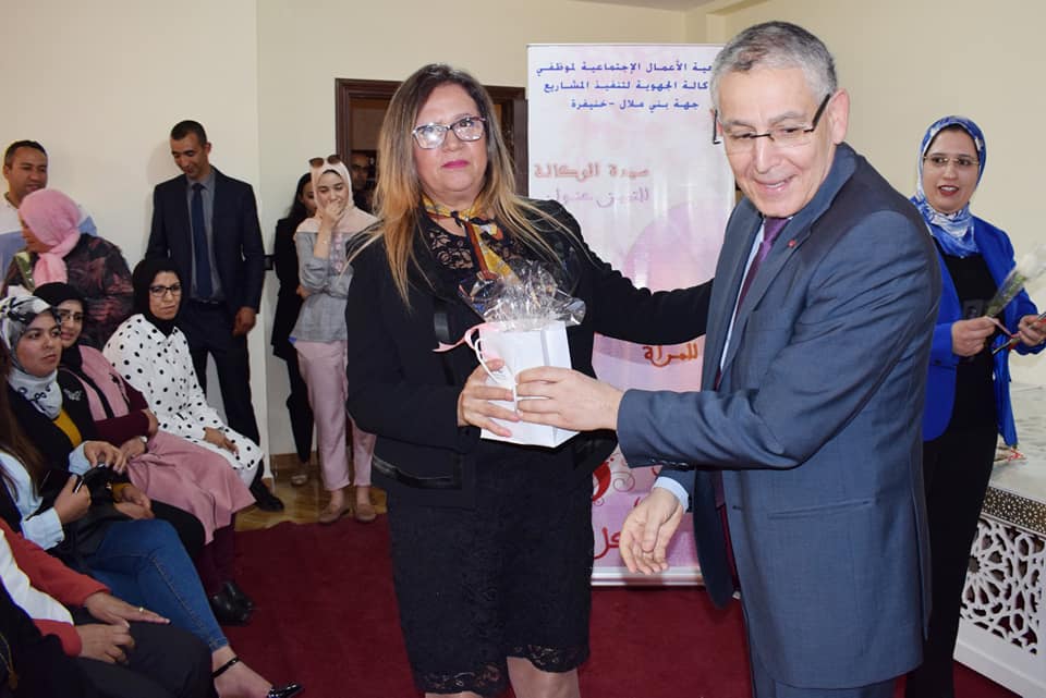 احتفاءا باليوم العالمي للمرأة، ترأس السيد ابراهيم مجاهد رئيس مجلس جهة بني ملال خنيفرة و السيد والي الجهة حفلا نظمته جمعية الأعمال الاجتماعية لموظفي وكالة تنفيد المشاريع بمجلس جهة بني ملال خنيفرة، وقد عرف الحفل تكريم عضوات و موظفات الوكالة و مجلس الجهة و عرف اللقاء حضور السادة موظفي الوكالة و المجلس و أعضاء المجلس. وكدا السادة مدراء مدير وكالة تنفيد مشاريع و السيد مدير العام للمصالح و السيد مدير شؤون الرئاسة و المجلس.