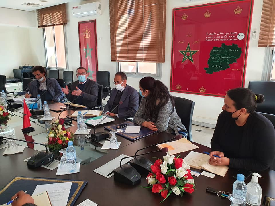 اشرف اليوم السيد امين الحسيني والسيدة هناء شهبون نواب رئيس مجلس الجهة على اشغال اجتماع مع ممثلي الاتحاد الأوربي والمكتب الوطني للتكوين المهني ومكتب الخبرة المعين لمواكبة هذا الورش الكبير والذي يندرج ضمن تعزيز مسار الجهوية المتقدمة ببلادنا، ويؤسس للاستراتيجية الوطنية للمكتب الوطني للتكوين المهني والتي تعرف تقدما مهما من خلال مدن المهن والكفاءات، والتي تعتبر جهة بني ملال خنيفرة رائدة في تنزيلها