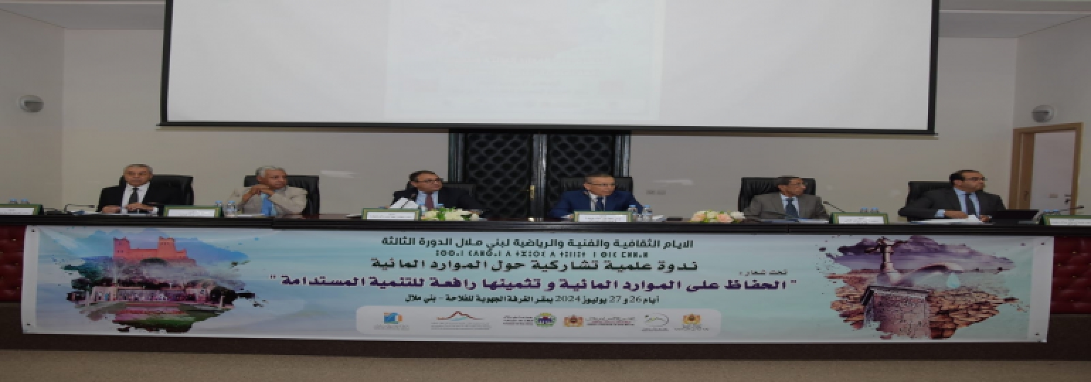 اشرف السيد عادل البركات رئيس مجلس جهة بني ملال خنيفرة إلى جانب السيد والي جهة بني ملال خنيفرة، خطيب الهبيل، على افتتاح أشغال الندوة العلمية التشاركية حول موضوع تدبير نذرة الموارد المائية بالجهة والتي خصص لها شعار : “الحفاظ على الموارد المائية وتثمينها رافعة للتنمية المستدامة”.