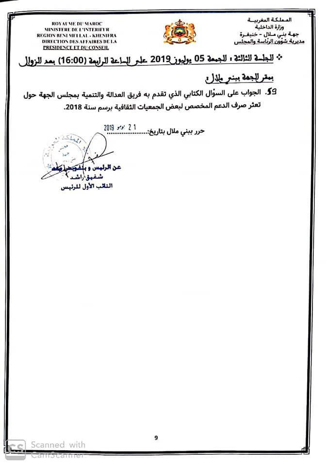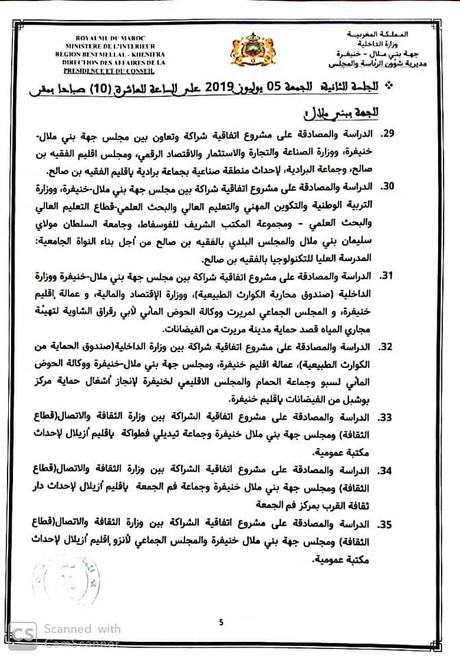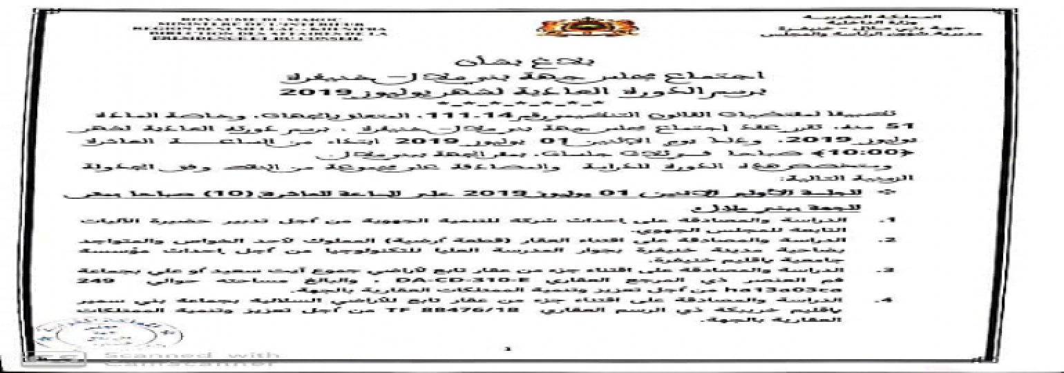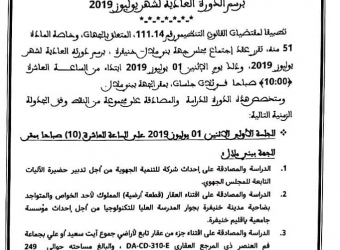 جدول أعمال الدورة العادية لشهر يوليوز 2019.