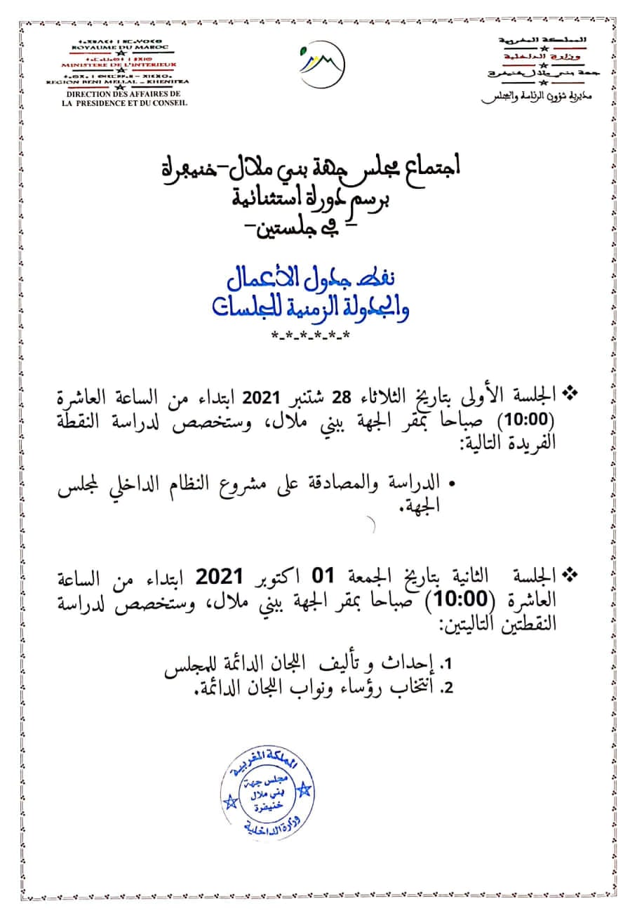 جدول الاعمال برسم دورة استثنائية