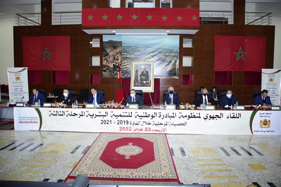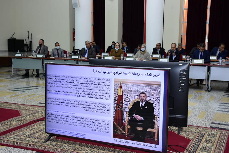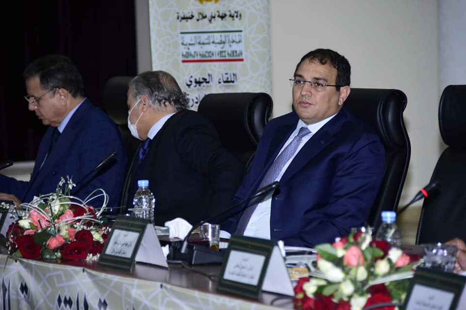والي جهة بني ملال خنيفرة يشرف الى جانب الوالي المنسق الوطني للتنمية البشرية والسادة عمال اقاليم الجهة والسيد رئيس مجلس الجهة على اشغال الورشة التفاعلية المنظمة حضوريا وعبر تقنية التناظر المرأي حول منظومة المبادرة الوطنية للتنمية البشرية، المرحلة الثالثة مع تقديم الحصيلة المرحلية 2019-2021.