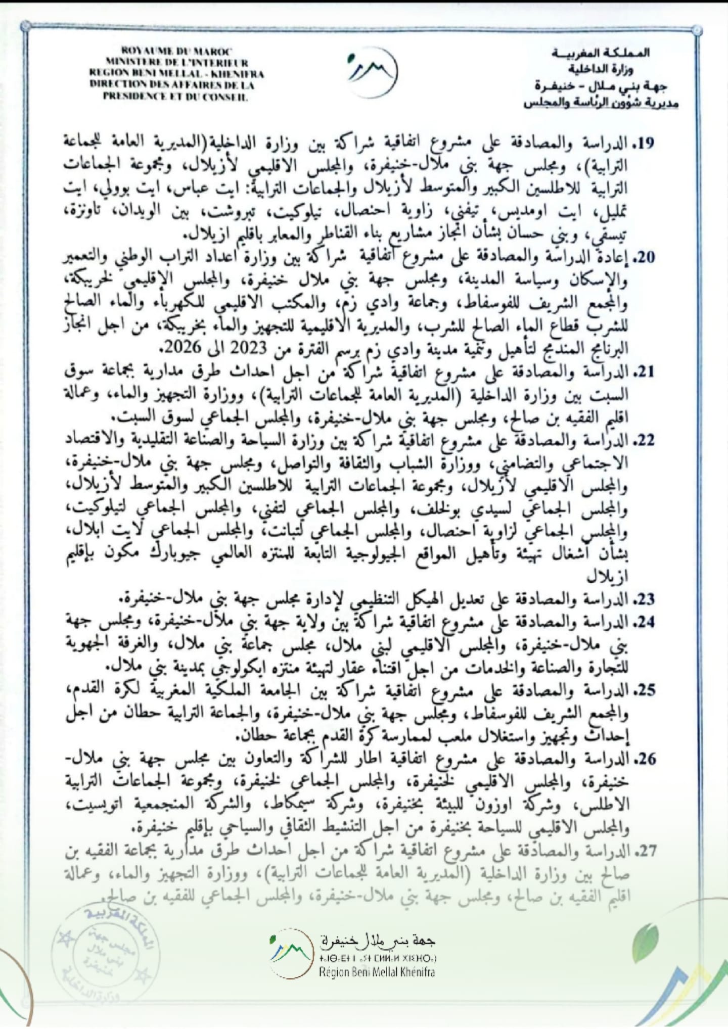 اجتماع مجلس جهة بني ملال- خنيفرة برسم الدورة العادية لشهر مارس 2023