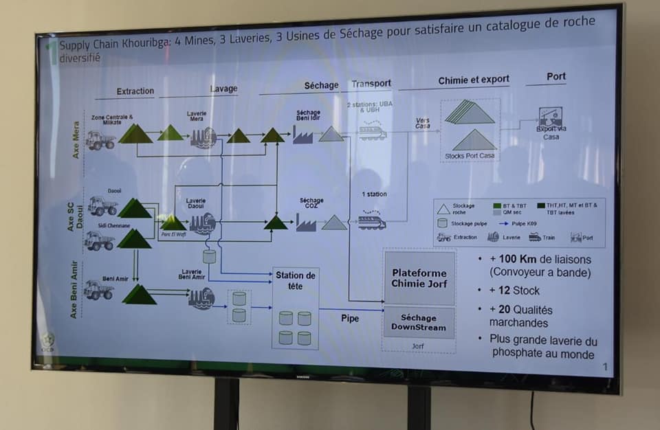 في إطار تتبع المشاريع الصناعية الكبرى بالجهة، خاصة ما يتعلق منها بالصناعة الاستخراجية باحواض الفوسفاط، قام صبيحة اليوم كل من وزير الطاقة والمعادن والبيئة مرفوقا بالسيد عامل إقليم خريبكة والسيد ابراهيم مجاهد رئيس مجلس الجهة والعديد من الشخصيات، بزيارة ميدانية للوقوف على تقدم مشاريع تزويد مغاسل الفوسفاط انطلاقا من تحلية مياه البحر ومعالجة المياه العادمة بالشكل الذي سيضمن توفير أزيد من 150مليون متر مكعب من المياه العذبة يمكن استغلالها لتوسيع المساحات المسقية بالجهة، كما وقف الوفد على التقدم التكنولوجي والعلمي للمنشأت الصناعية للمجمع الشريف للفوسفاط بكل من خريبكة والفقيه بنصالح. وهو ما يعزز من مساهمة الجهة في الناتج الداخلي الخام، ويساهم بذلك من تحسين تصنيف الجهة جمعة منتجة للثروة وخالقة لفرص الاستثمار والتشغيل.