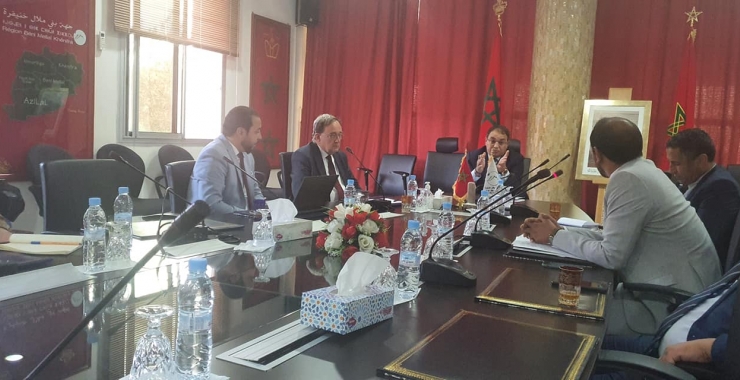 رئيس مجلس جهة بني ملال خنيفرة والسيد نور الدين الزبدي نائب الرئيس يجريان مقابلة مع ممثلي البرنامج الامريكي للتنمية USAID بخصوص تنزيل برامج التنمية الدامجة لجهة بني ملال خنيفرة ISED، هذا البرنامج الذي يستهدف مواكبة العديد من الجماعات التر