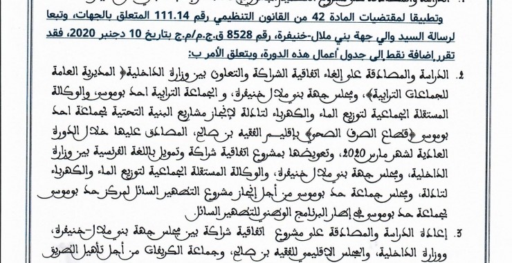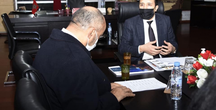 رئيس مجلس جهة بني ملال خنيفرة ابراهيم مجاهد يعقد إجتماعا تشاوريا مع المدير الجهوي للوكالة الوطنية لانعاش التشغيل والكفاءات ANAPEC لوضع اللمسات الأخيرة على اتفاقية للشراكة بين الطرفين لدعم التشغيل الذاتي ومواكبة حاملي المشاريع والباحثين ع