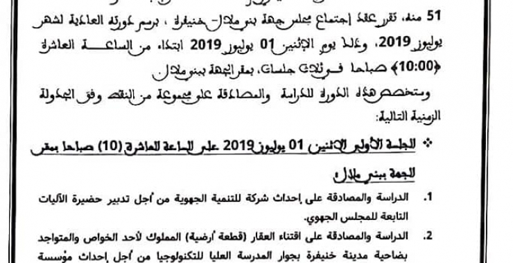 جدول أعمال الدورة العادية لشهر يوليوز 2019.