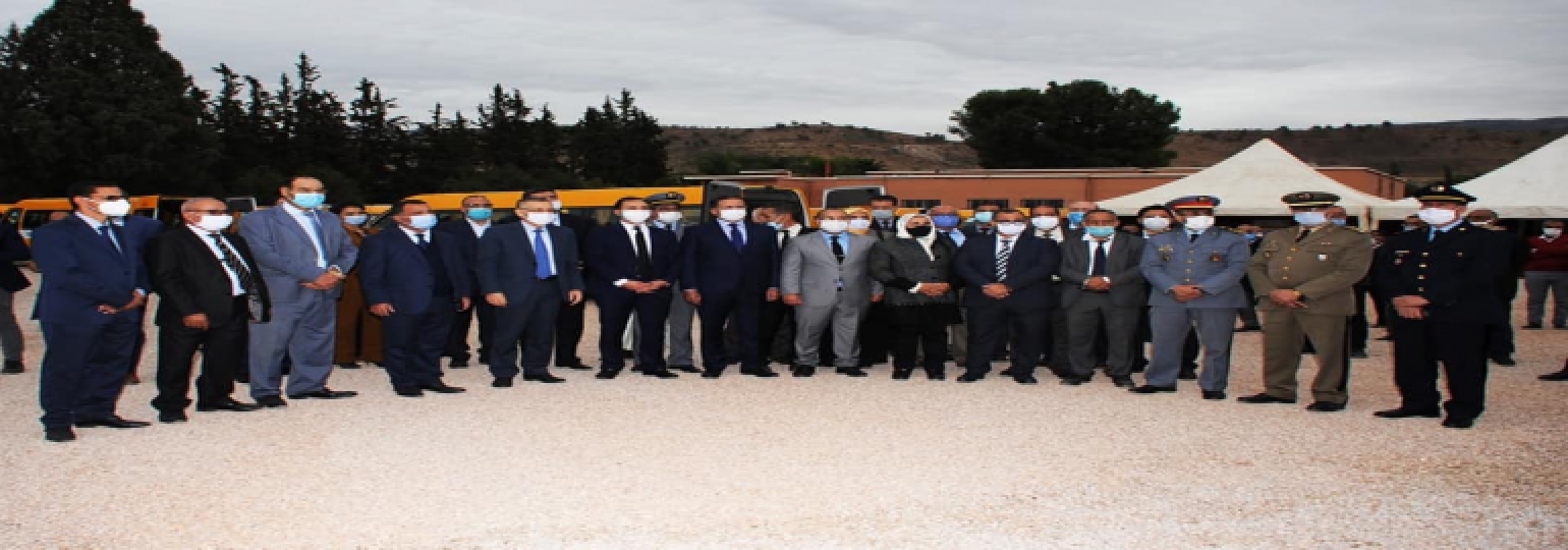 رئيس مجلس جهة بني ملال خنيفرة و والي الجهة يشرفان على توزيع الشطر الأول من حافلات النقل المدرسي لفائدة 99 جماعة