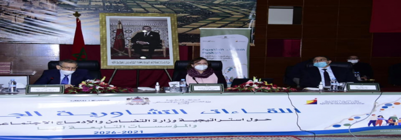 برئاسة السيد خطيب لهبيل والي جهة بني ملال خنيفرة والسيد عادل البراكات رئيس مجلس جهة بني ملال خنيفرة، وبحضور السيدة عواطف حيار وزيرة التضامن والادماج الاجتماعي والاسرة، اعطيت صباح اليوم انطلاقة أشغال اللقاء التشاوري الجهوي حول استراتيجية الوزارة لدعم القطاع الاجتماعي والرفع من مؤشرات التنمية البشرية بالجهة وتقديم برامج الوزارة لدعم منظومة التمكين الاقتصادي والاجتماعي للنساء والاشخاص في وضعية صعبة.